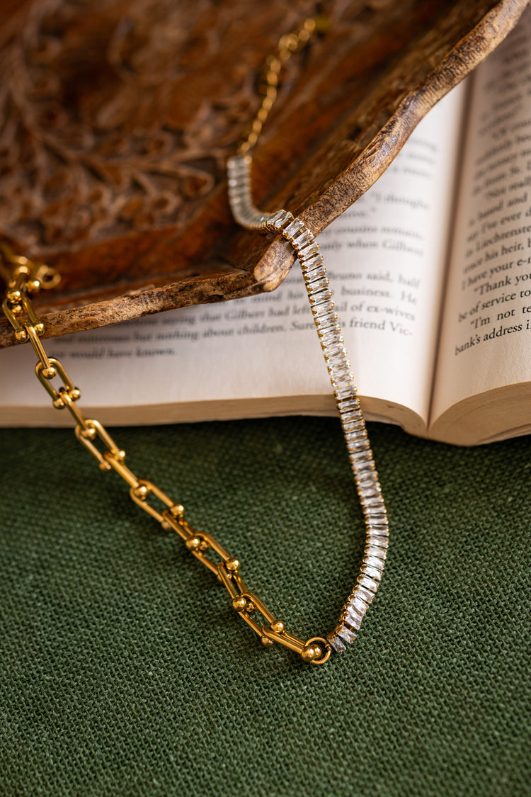 Rectangle Zircon and Link Chain Necklace