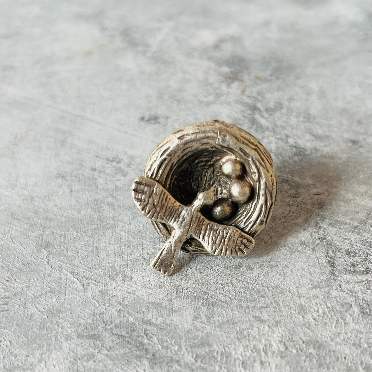 Carved nest finger ring - Silver tone