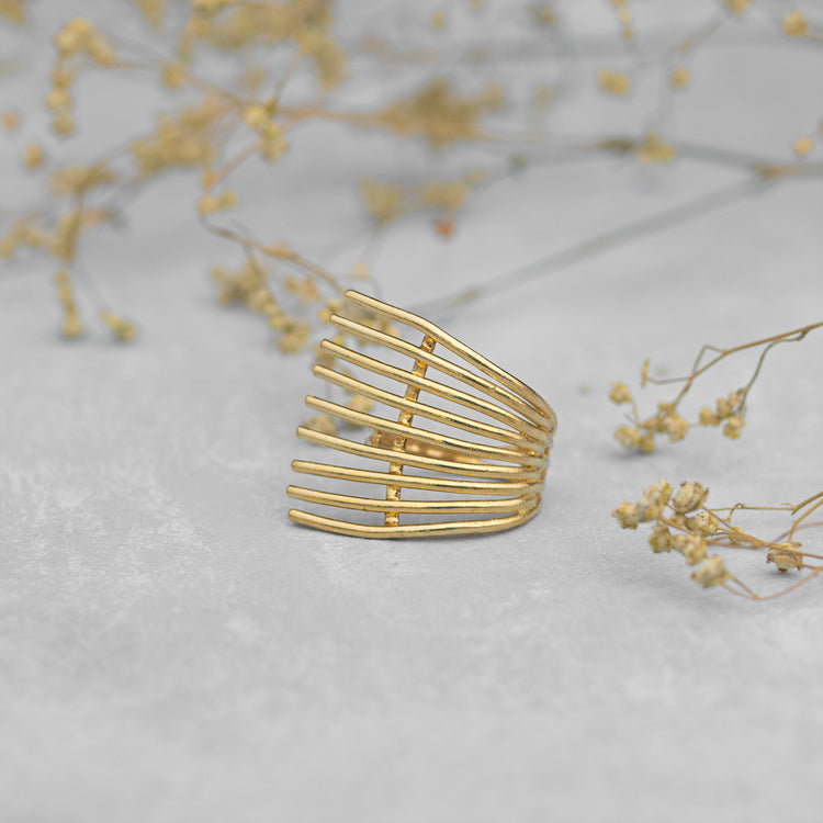 Leaf Rake Finge ring- Brass Gold
