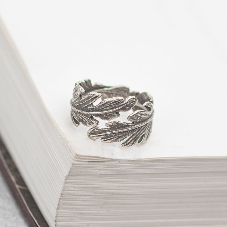 Leaf Circle Finger Ring - Silver
