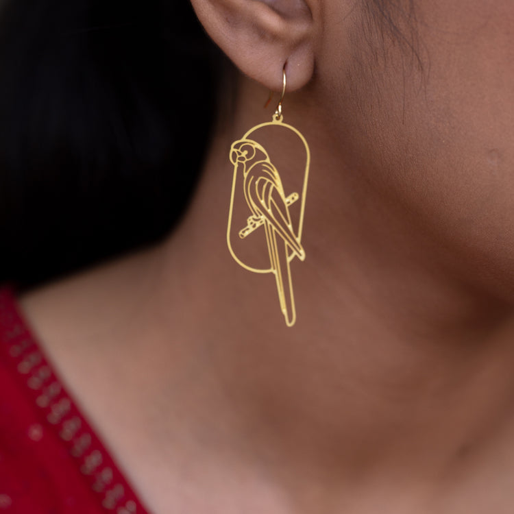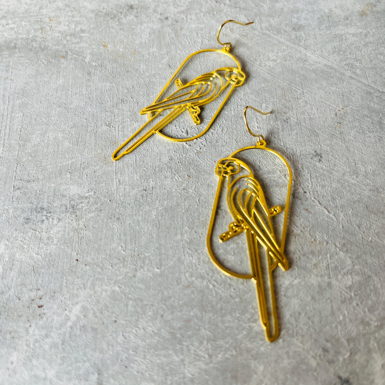 Parrot on Swing Brass Earrings
