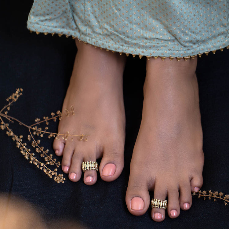 These plain brass toe rings with their intricate design make me feel truly royal.