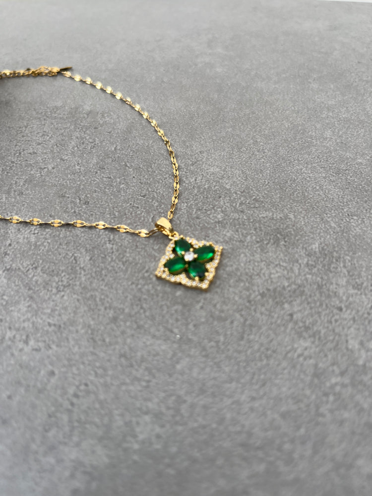 Green Stone Clover Necklace