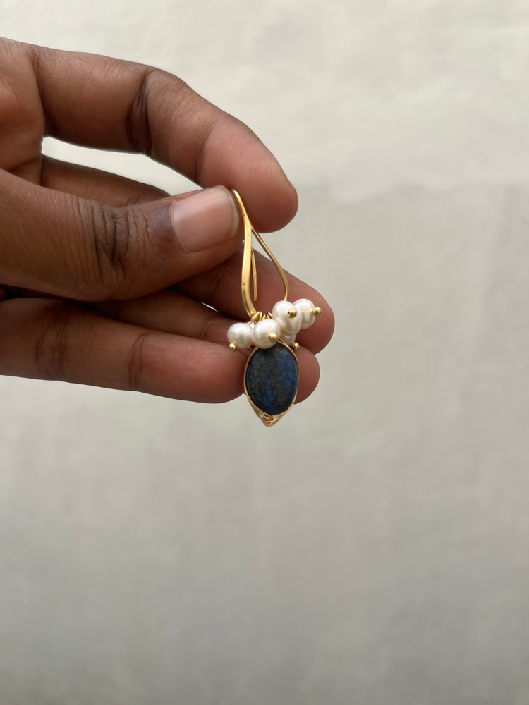 Pearl and Lapis Hook Earring