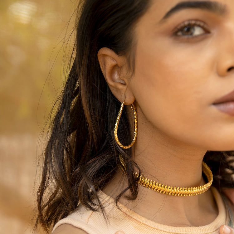 Hammered Oval Hoop Earring