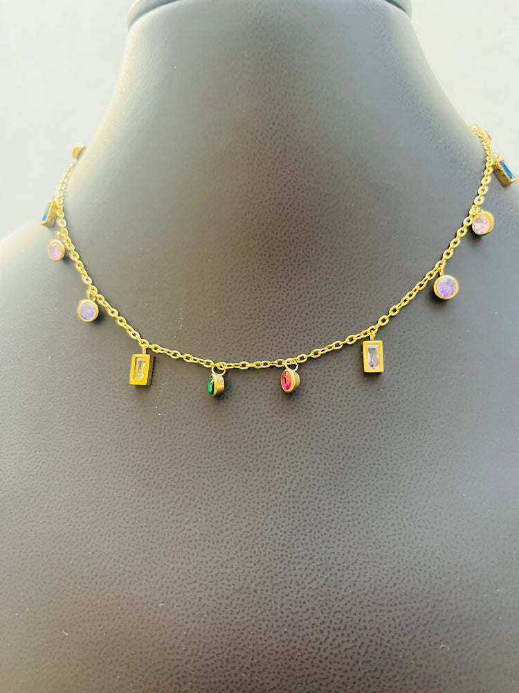 Multicolour stone drop necklace