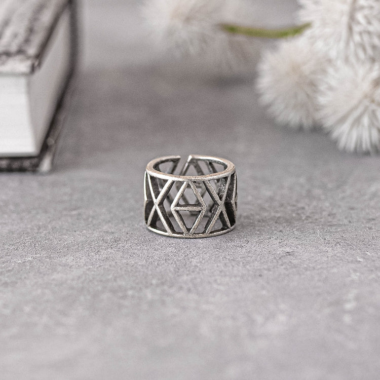 Closed X Finger ring - Silver tone