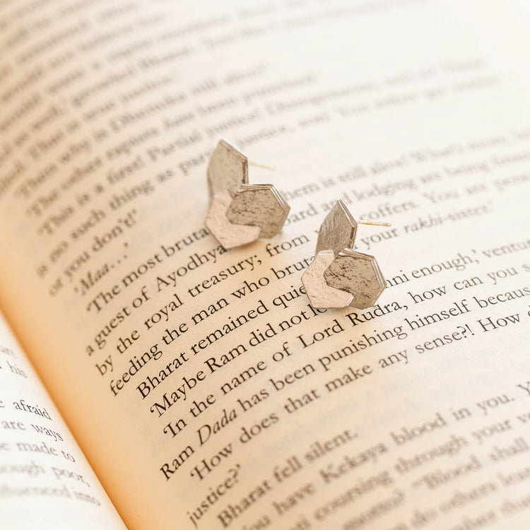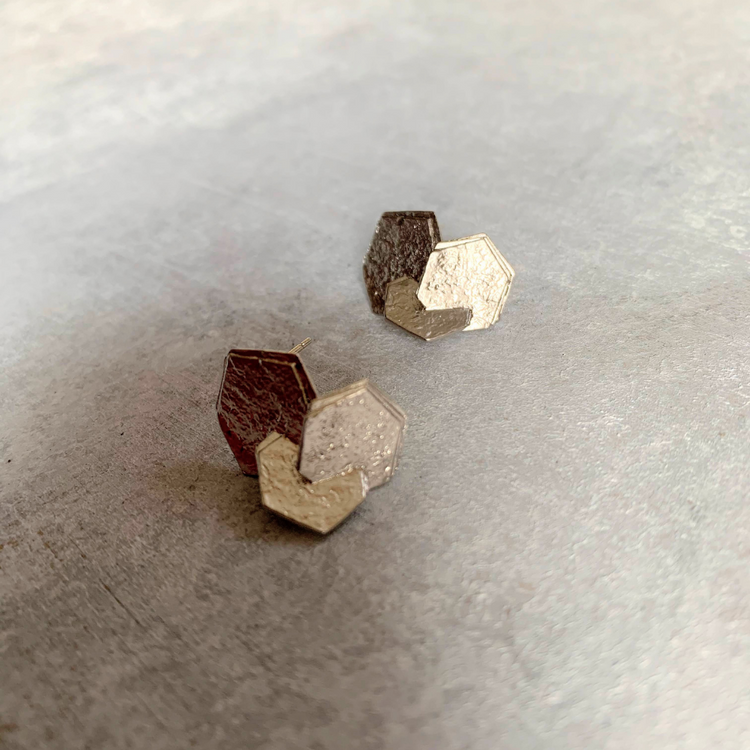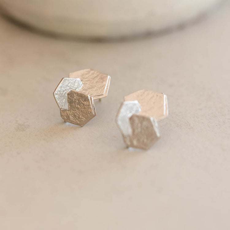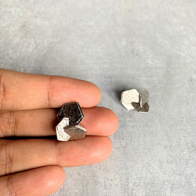 2D Clustered Hexagon Stud - Silver