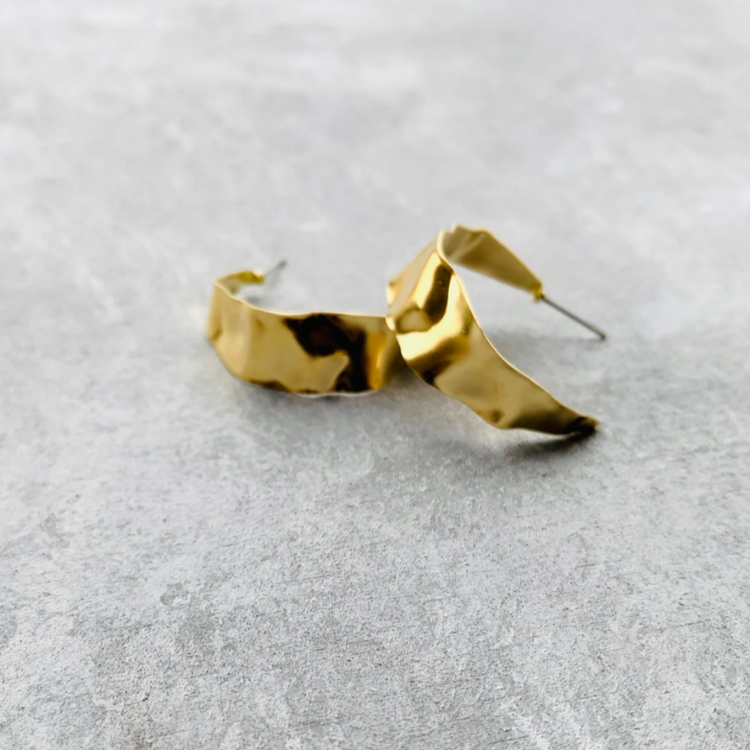 Brass Wavy Hammered Half Hoop - Shiny gold look