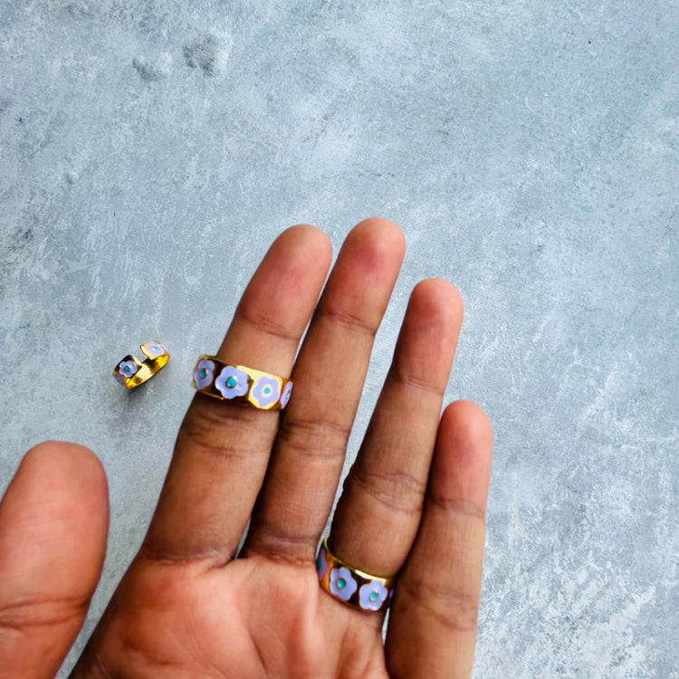Floral enamel Embedded Ring - Single piece